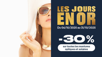 Offre verres progressifs Du 16/03/26 au 31/05/2026, profitez de -20% sur les verres progressifs. Satisfait ou échangé !