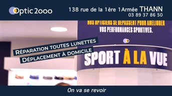 Bienvenue sur le site de votre opticien THANN Optic 2000. Conseils, collections de lunettes de soleil, lunettes de vue, lentilles, retrouvez toute l'expertise de votre opticien au 138 Rue de la 1ère Armée à THANN.